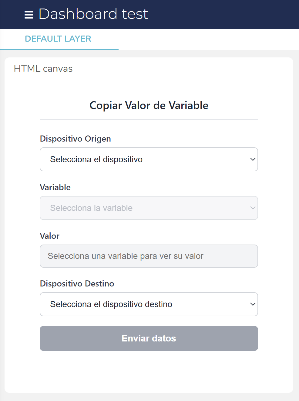 While the previous options are functional, they don’t fully meet your specific requirements. In this scenario, the best alternative is to create an HTML Canvas widget. This powerful tool allows you to use your own HTML, CSS, and JavaScript to build a custom solution. You can design a simple form similar to the Manual Input widget that sends data via a button, but with the added benefit of using a simple API GET request to retrieve and display the variable’s last stored value in the text field every time the dashboard loads.